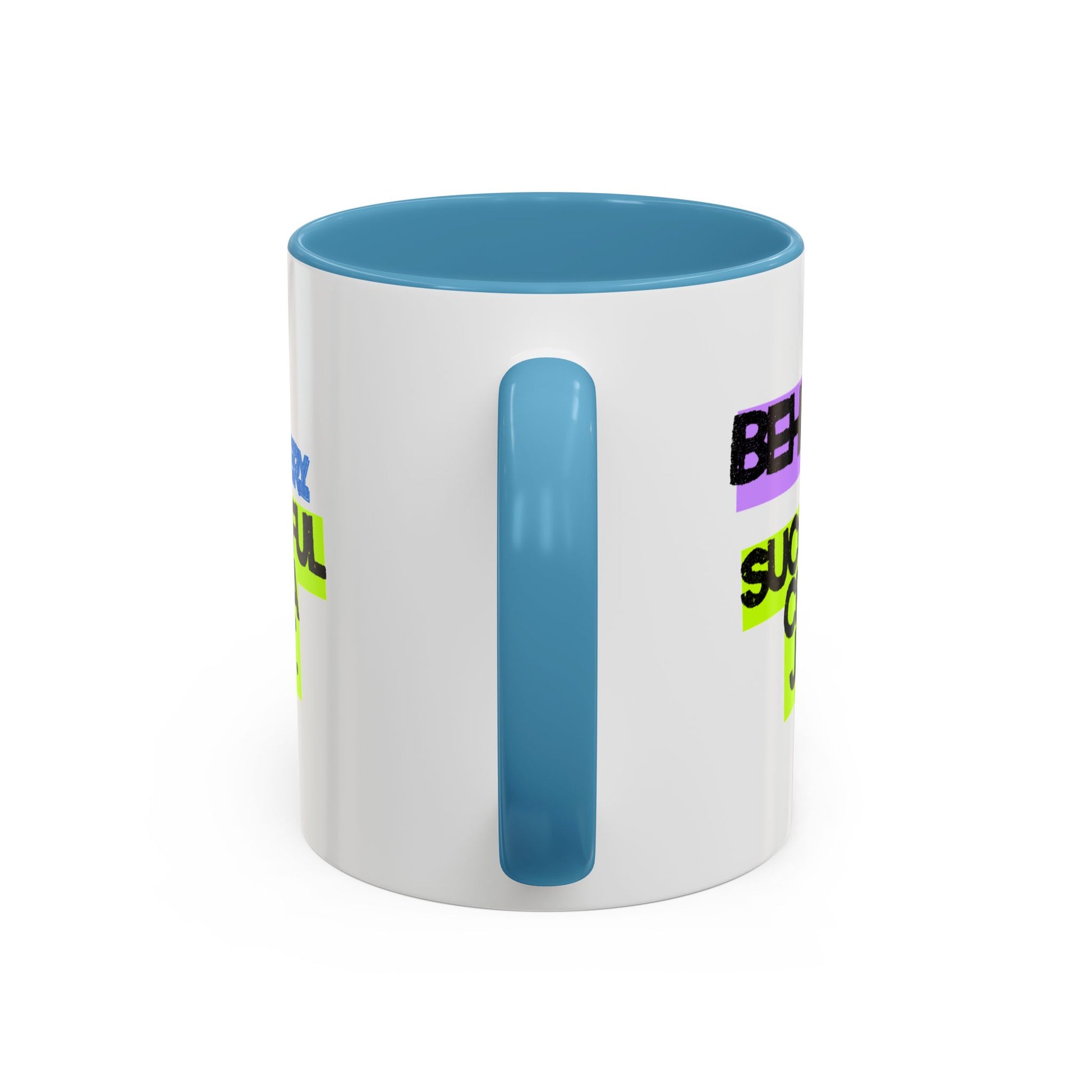 - Made from durable white ceramic with colored interior and handle